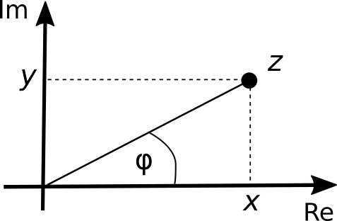 - The polar angle φ: This is the angle which the line between the origin and the point z forms with the positive real axis.